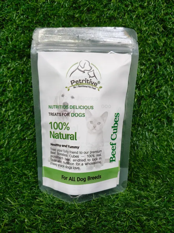 Petritive beef Cubes – there is a single ingredient product. Delicious chew treat for your dogs and cat.