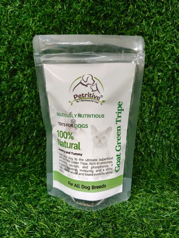Magical Food Treats, Raw Green Tripe Green tripe is excel food of immense power! This is a very nourishing snack that is full of beneficial bacteria, enzymes, and other nutrients that are great for the health of your furry friend. At Petritive you can get quality Goat Green tripe for dogs and other pets.